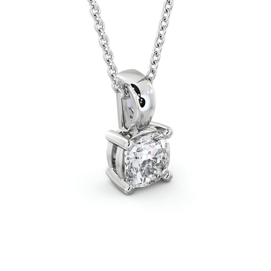 14K White Gold 0.50 Ct Lab-Grown Cushion Solitaire Four Claw Diamond Pendant
