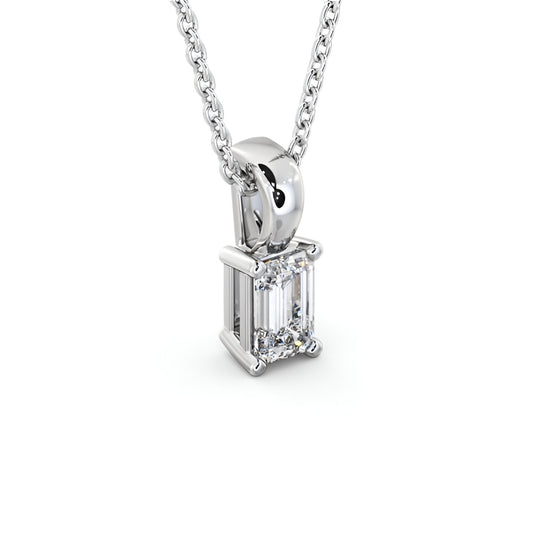 14K White Gold 0.50 Ct Lab-Grown Emerald Cut Solitaire Four Claw Diamond Pendant