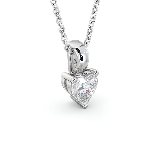 14K White Gold 0.50 Ct Lab-Grown Heart Solitaire Three Claw Diamond Pendant