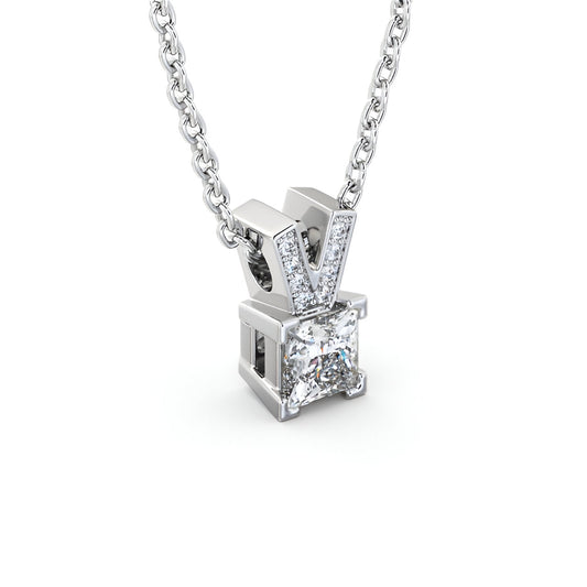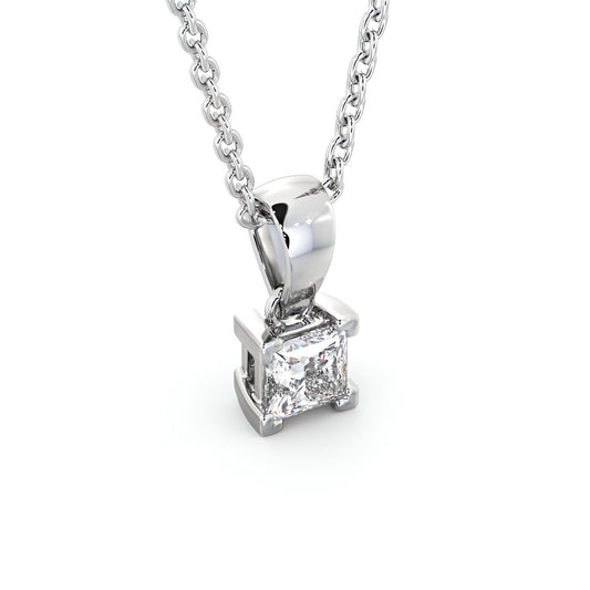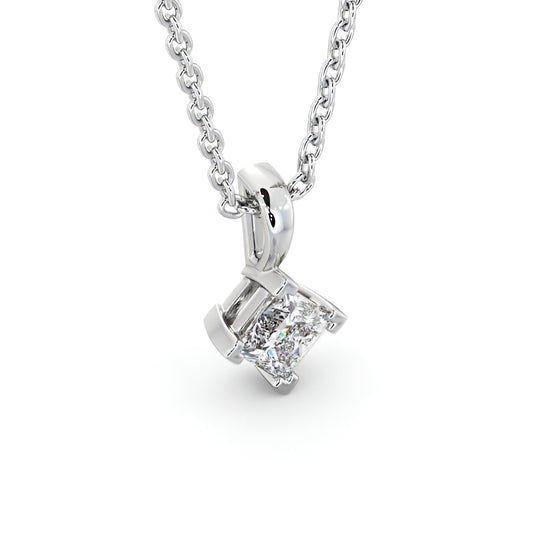 14K White Gold 0.50 Ct Lab-Grown Princess Solitaire Four Claw Diamond Pendant